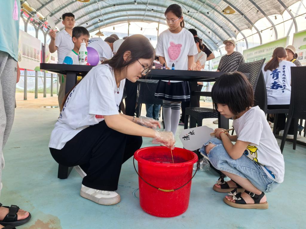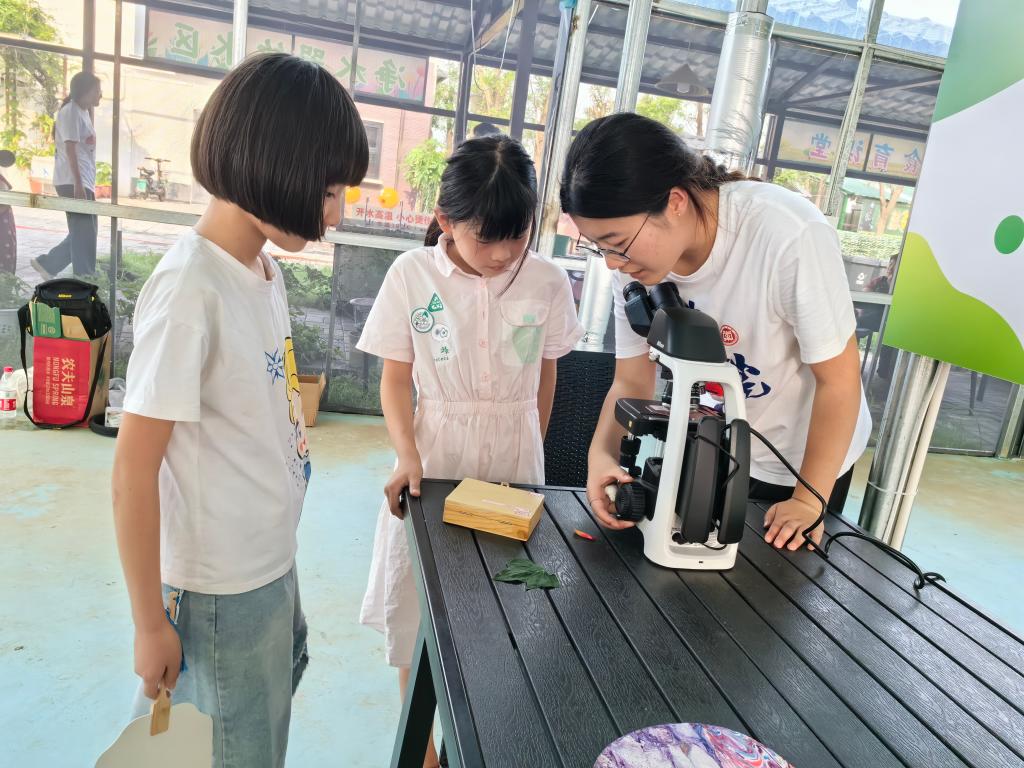 志愿者在前良科技小院,配合齐村镇团委开展青少年儿童研学活动。教青少年儿童背诵二十四节气歌,制作番茄果肉细胞临时装片,学习光学显微镜使用,开展漆扇制作、石膏娃娃DIY、儿童绘画填色等活动。志愿者还和孩子们一起开展除草及番茄采摘大比拼活动,让孩子们在课堂上探索,在劳动中体验,通过一系列活动,感受农耕教育的美好。