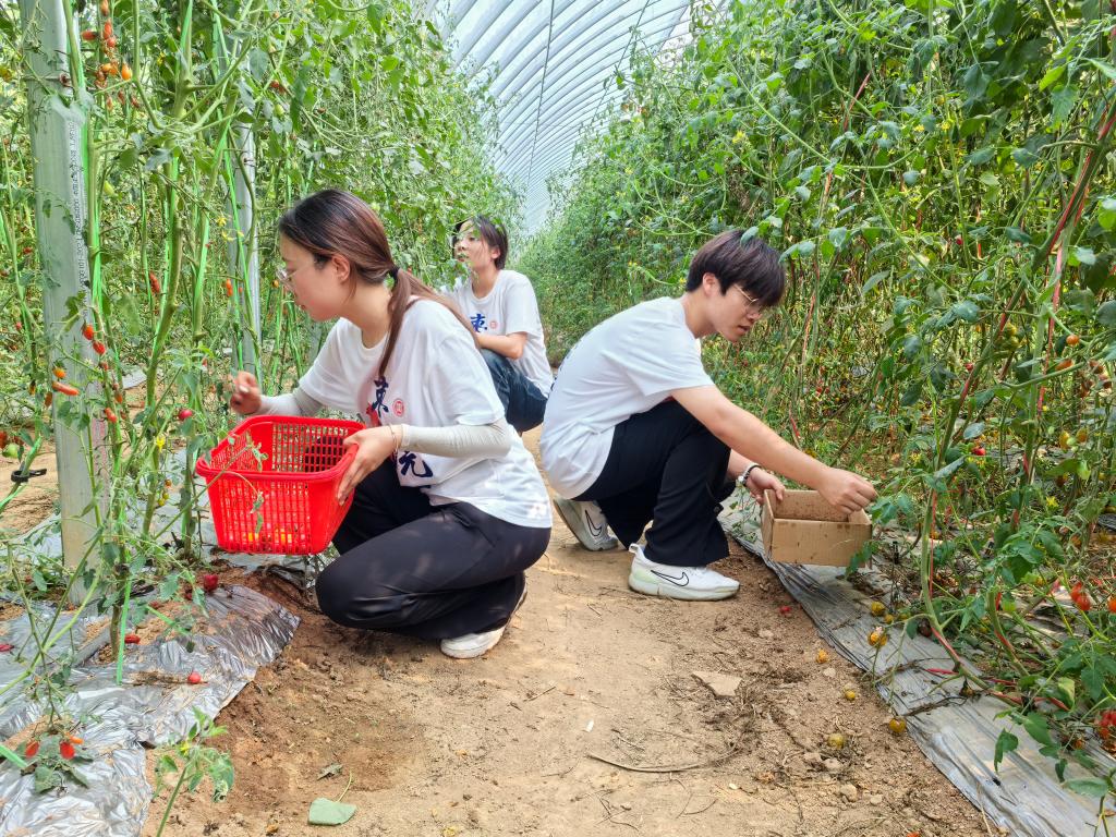志愿者在科技小院开展除草,玉米种植、番茄采摘、红薯翻殃等农情农事体验活动,真正用脚去丈量土地,体会粒粒皆辛苦,感受“脚沾黄土,背负青天”中的坚实与温暖,将停留的理论知识转化为实践后的深刻体会。