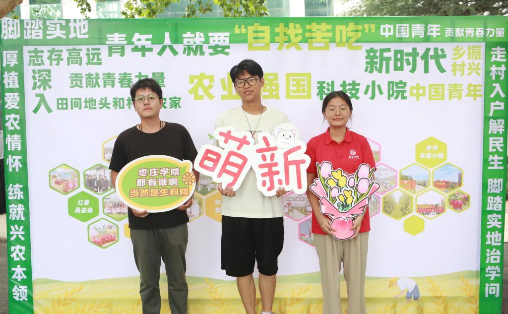 精心布置,凸显温度。为了营造欢快而热烈的迎新氛围,学院精心布置了理工楼和迎新报到大本营。理工楼前,长长的红色横幅寄托着学院对于新生的欢迎与期待;在迎新报到大本营,从学院简介到充满农趣的文化墙,每一处细节都透露着生科学院的独特魅力。学院箭头标志和欢迎新同学的宣传展板,让新生和家长们能够轻松找到报到地点,充满学院特色的合影墙等互动体验不仅让新生们感受到了归属感,也成为了他们珍贵的开学记忆。