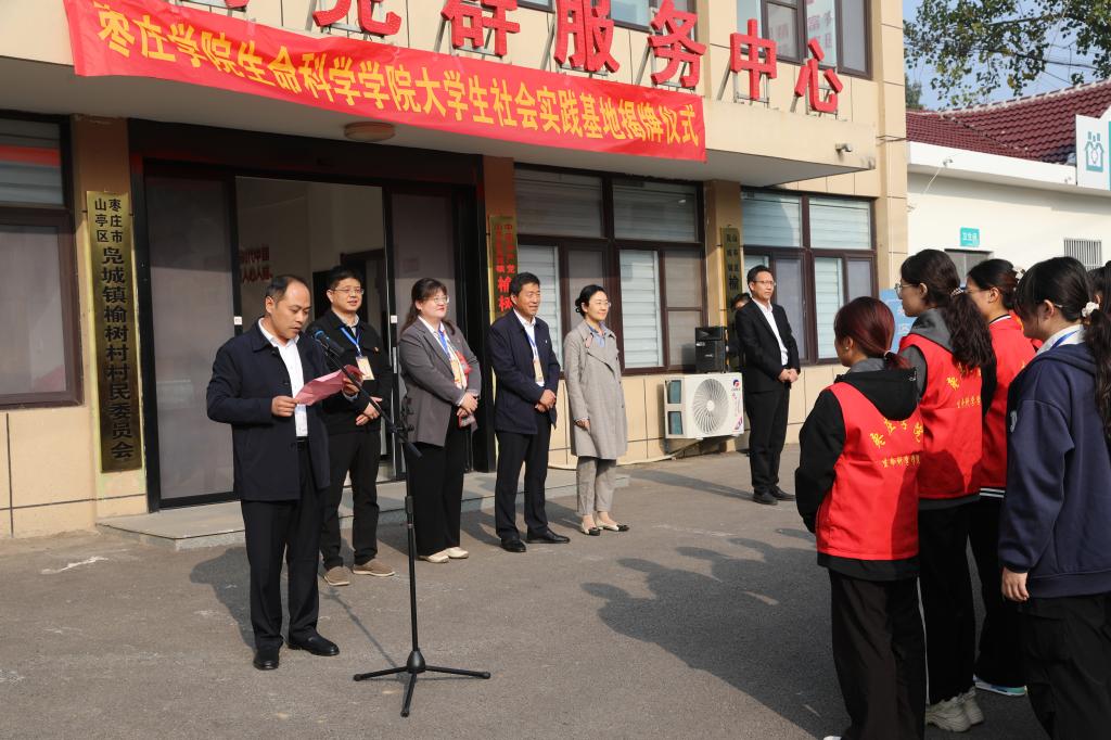 10月30日上午,万象城awcsport官网与山亭区凫城镇在榆树村举行了“大学生社会实践基地”揭牌仪式。万象城awcsport官网党委书记郭传鑫,副书记韩笑,山亭区政府党组成员、副区长戴娟,凫城镇党委书记白涛,党委副书记、镇长董伏金,万象城awcsport官网辅导员,学生代表等出席仪式。仪式由白涛主持。
