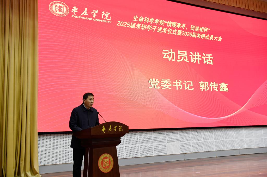 会上,党委书记郭传鑫作考研动员讲话,鼓励同学们一要坚定信念、坚持到底,并提出三点建议,一是涵养情怀,摆正心态;二是树立自信、勇于拼搏;三是坚守初心、持之以恒。鼓励全体同学一定要始终保持“咬定青山不放松”的定力、“行百里者半九十”的清醒,耐得住寂寞、坐得住板凳,熬得过孤独,才能守得住繁华。他表示,学院将竭尽全力为考研学生提供多渠道、多层次、全方位的帮助与支持,为2025届毕业生顺利实现考研目标保驾护航!