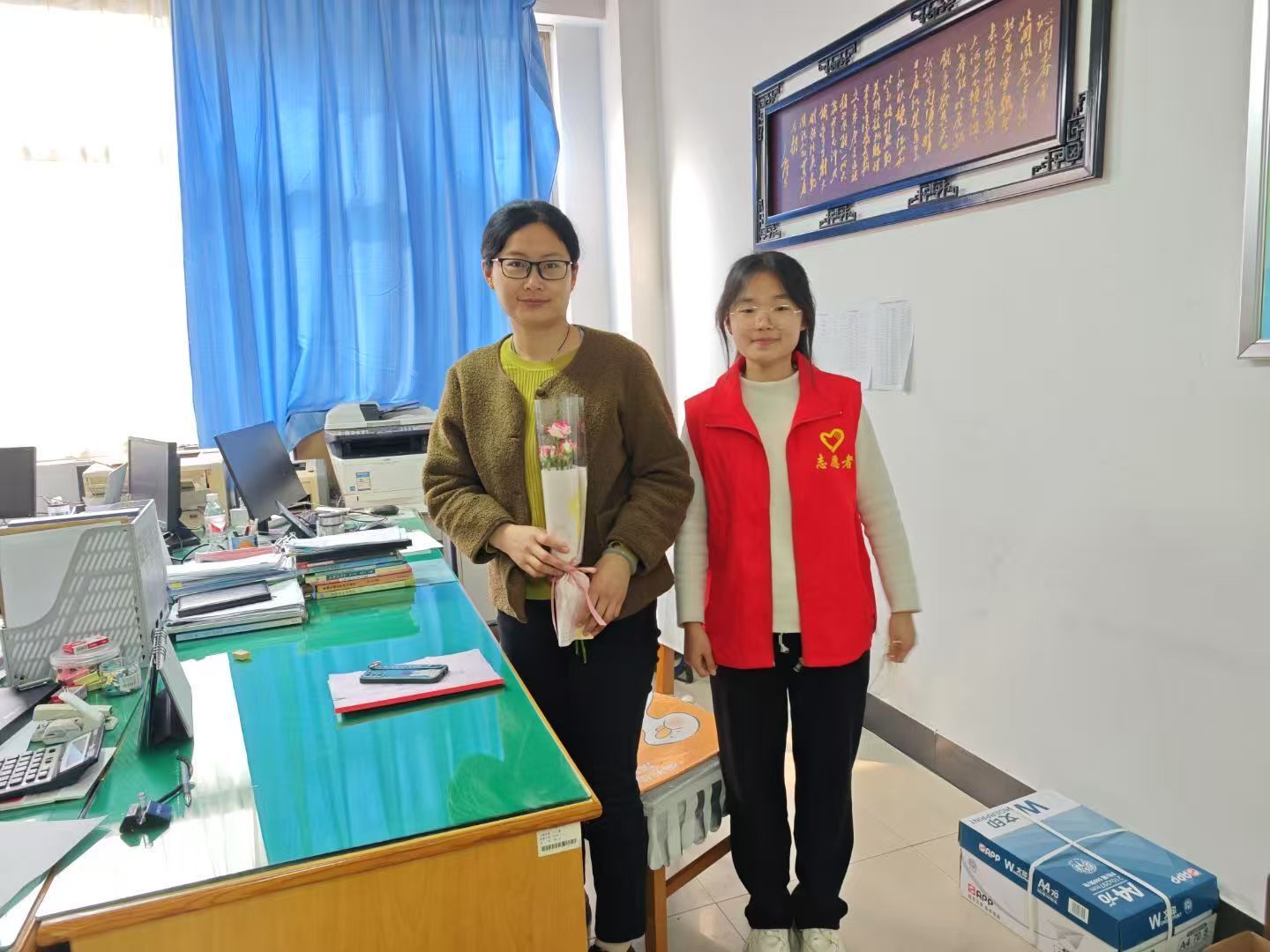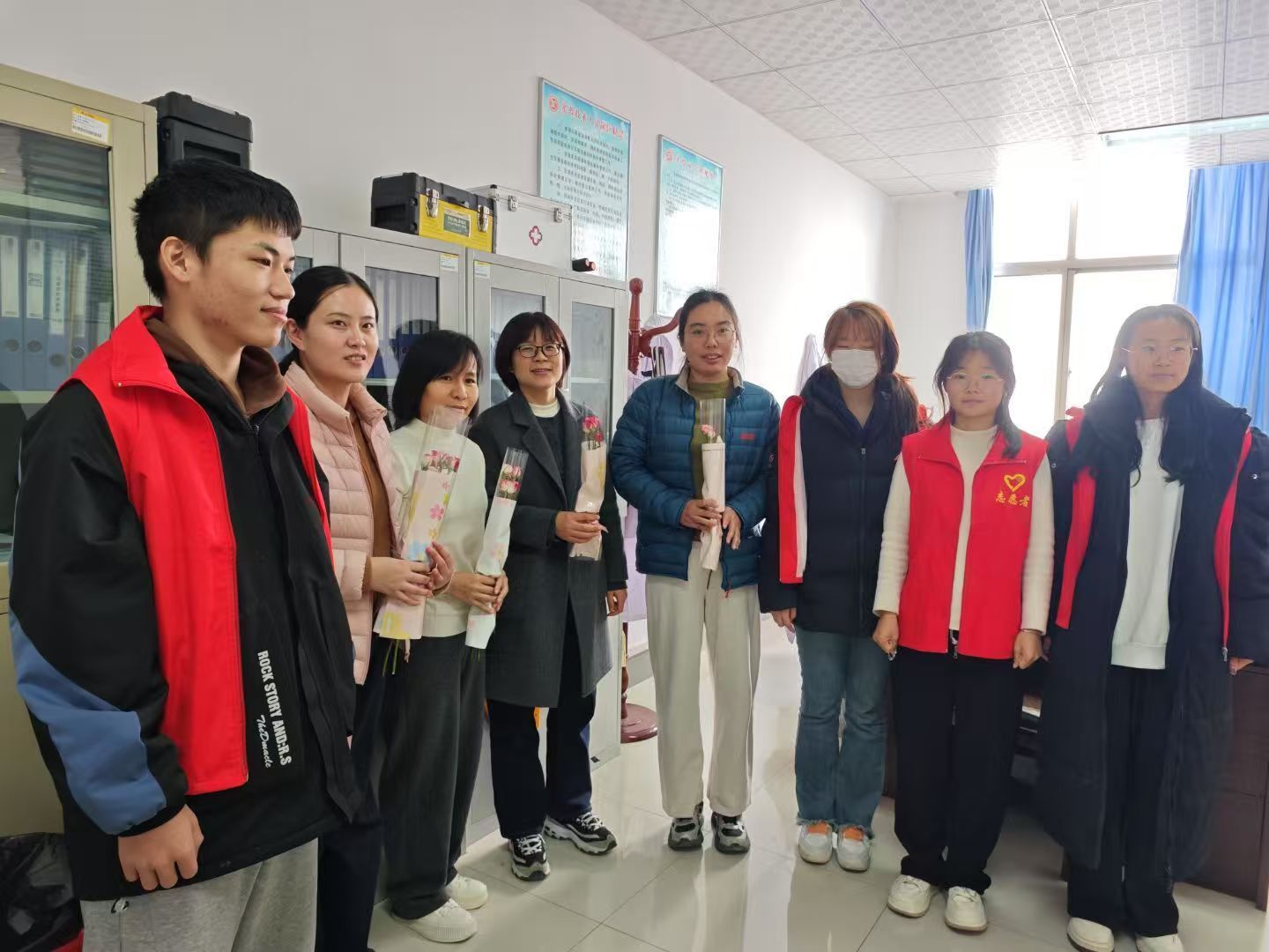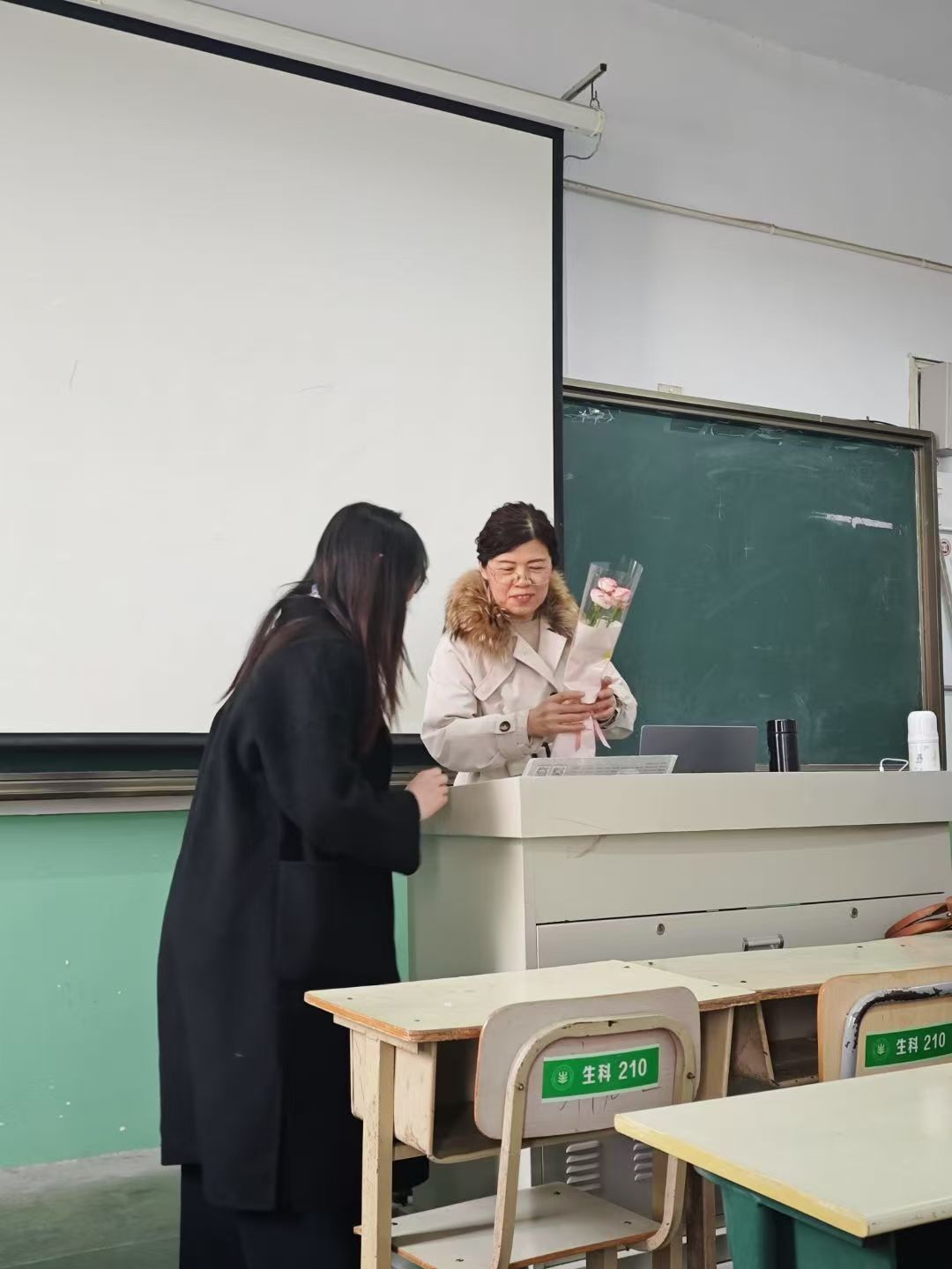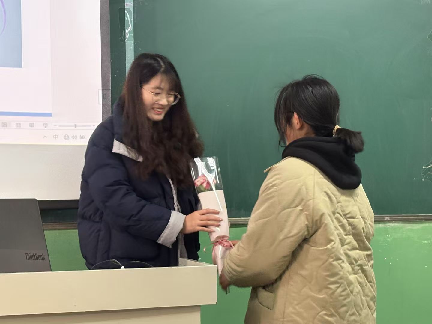 上午,学生会代表走进实验室、办公室,为女教工送上精心准备的鲜花与贺卡。一束束康乃馨承载着“向阳而生、桃李芬芳”的美好寓意,学生亲手书写的祝福语更让老师们倍感温暖。