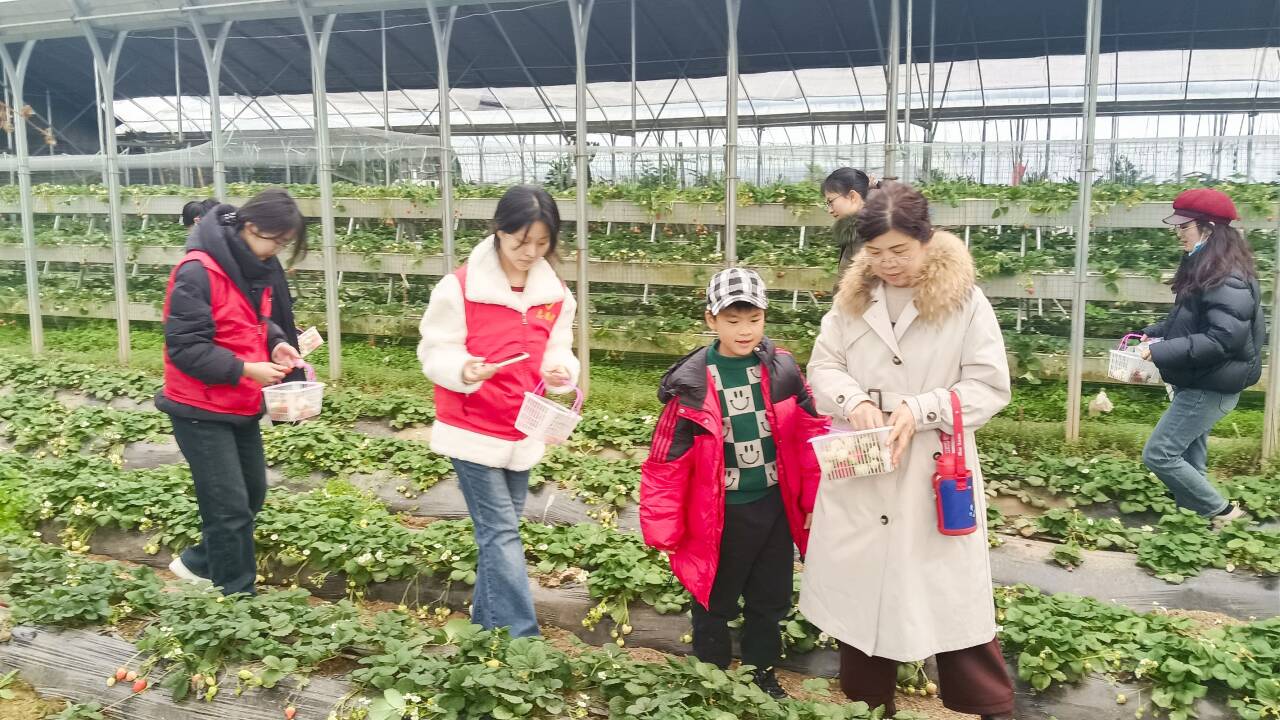 下午,女教工们乘坐大巴车前往侯庄鲜农农场与前良科技小院开展“春日采风、巾帼悦享”主题活动。大家在工作人员引导下走进温室,清新的草莓果香扑鼻而来。女教工们手提果篮,化身快乐果农,一边采摘品尝,一边相互交流,体验着采摘草莓、品尝鲜果的乐趣,每个人的脸上都洋溢着开心幸福的笑容。同时,对大棚内果蔬的肥水管理、病虫害防控等方面进行了新型创新实验成果推广。