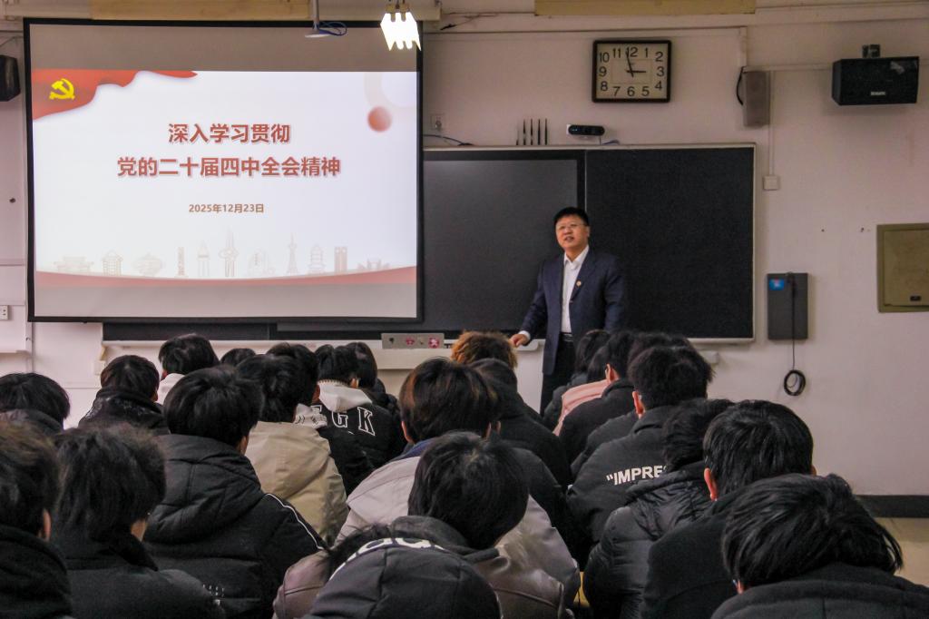 为深入学习宣传党的二十届四中全会精神,引导学生厚植爱国情怀、强化责任担当,12月23日,校党委委员、副校长李目海到万象城awcsport官网为2024级植物科学与技术专业两个班的学生作了一场内涵丰富、催人奋进的思政课。