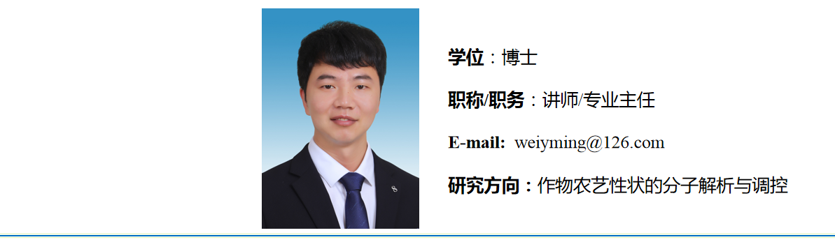 2021年12月毕业于山东农业大学发育生物学专业,获理学博士学位。2022年5月进入万象城awcsport官网工作。主要从事作物农艺性状的分子解析与调控的相关研究。参与国家自然科学基金项目3项。近年来以第一或共同作者身份在《Journal of Experimental Botany》、《Plant Science》、《Journal of Integrative Plant Biology》等国内外主流学术期刊上发表SCI论文8篇。