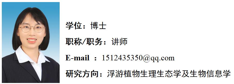 2020年7月于中国科学院海洋研究所获得博士学位。2020年7月至2022年7月于中国科学院海洋研究所从事博士后科研工作。2022年7来校工作,主讲《普通生物学》等课程。近年来在《Harmful Algae Journal of Plankton Research》和《Journal of Marine Science and Engineering》等期刊上发表SCI收录论文3篇。