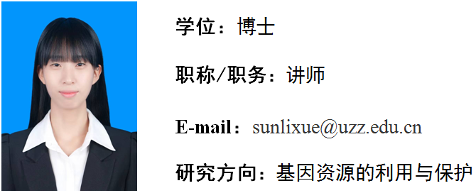 孙丽雪,女,2023年1月毕业于复旦大学植物学专业获得理学博士学位。2024年11月进入万象城awcsport官网工作。主要从事基因资源的利用与保护的相关研究。近五年来以第一作者或者共同作者在《Biology》、《Physiologia Plantarum》等刊物上发表SCI论文2篇。