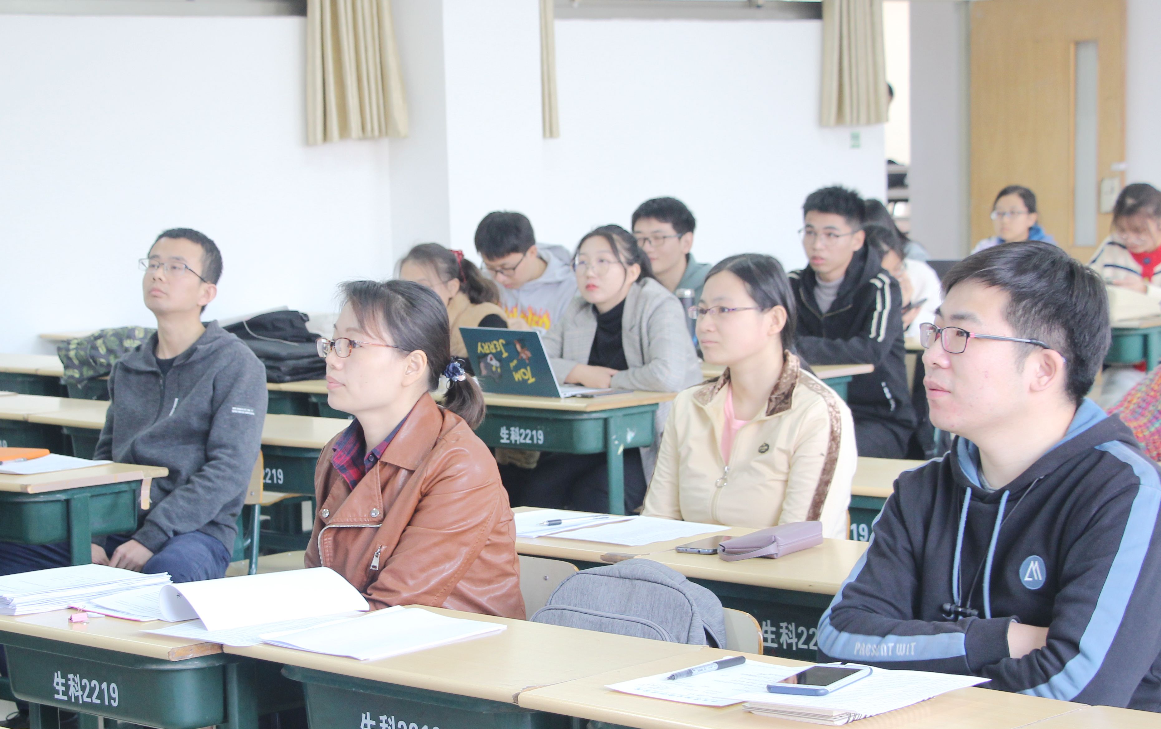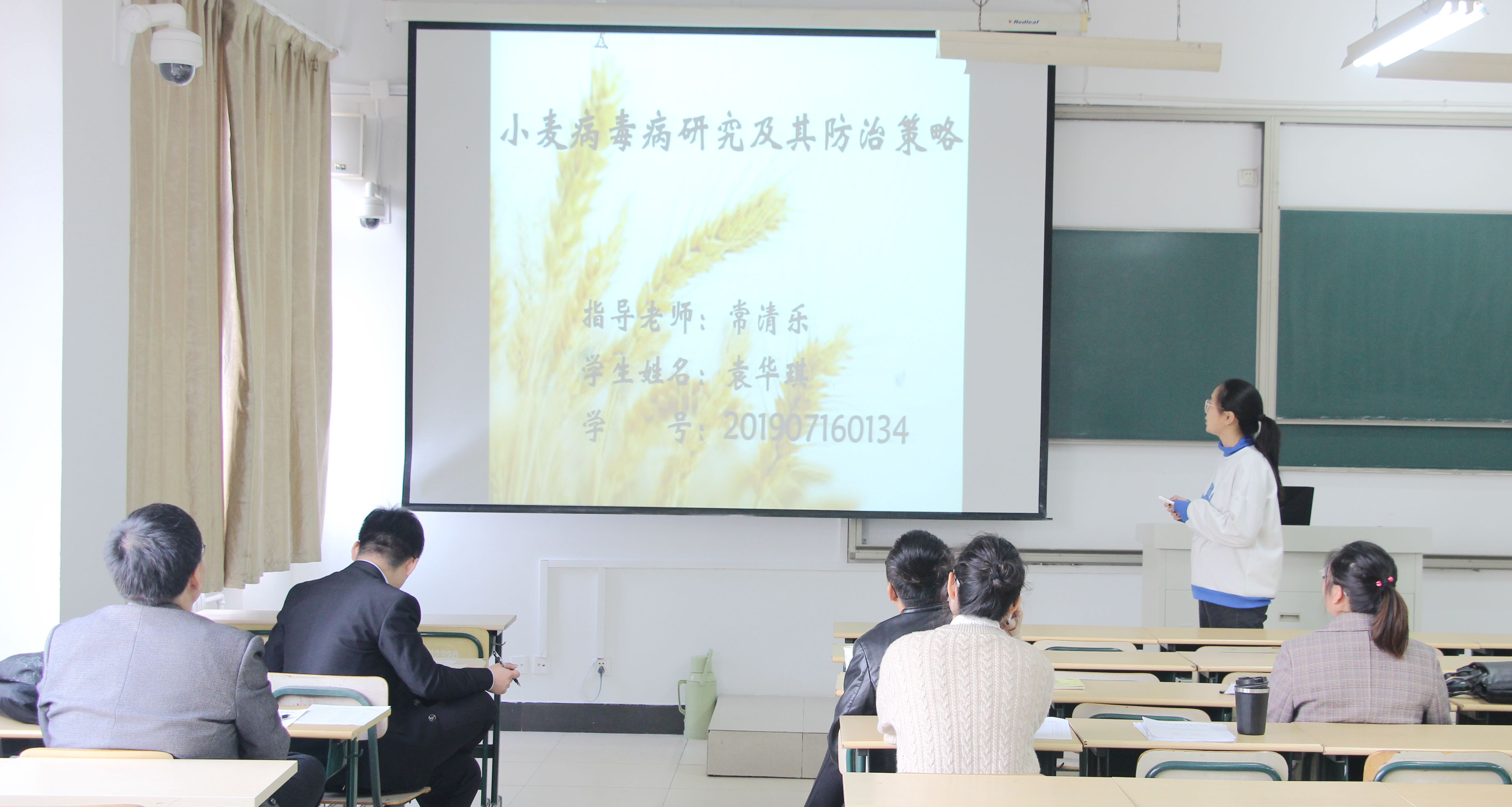 答辩学生通过PPT围绕选题意义、研究方案、预期结果、研究进展等方面介绍论文选题内容。各答辩组教师对每篇论文严格把关,就每位同学内容的创新性、可行性进行了认真研讨,并对学生的论文内容及后期方向提出了针对性建议。