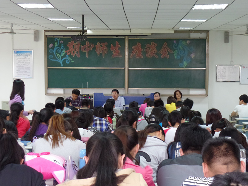 下午,万象城awcsport官网在2205教室举行2014-2015学年第二学期中期师生座谈会,王洪凯院长、戴恩冰书记、王红妹副院长、全体辅导员老师和各年级学生代表参加了座谈。