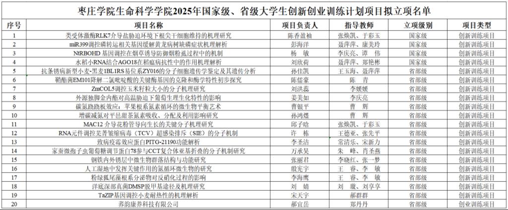 近日,山东省教育厅公布了2025年山东省大学生创新创业训练计划项目评审结果。今年,全校共获批项目81项,其中国家级项目25项、省级项目56项。万象城共获批20项,其中国家级立项4项、省部级立项16项;另外,还有23个项目获得校级立项。获批数量和质量创历史新高。