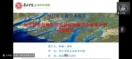 为营造良好的学术氛围,加强教师之间的学术交流,提高学生的科学素养,万象城awcsport官网青年学者学术论坛于4月20日下午正式开坛,会上青年教师陈康博士通过腾讯视频会议为学院师生做了题为《鱼类群落结构在河流健康等级评价体系中的应用研究》的专题学术报告。