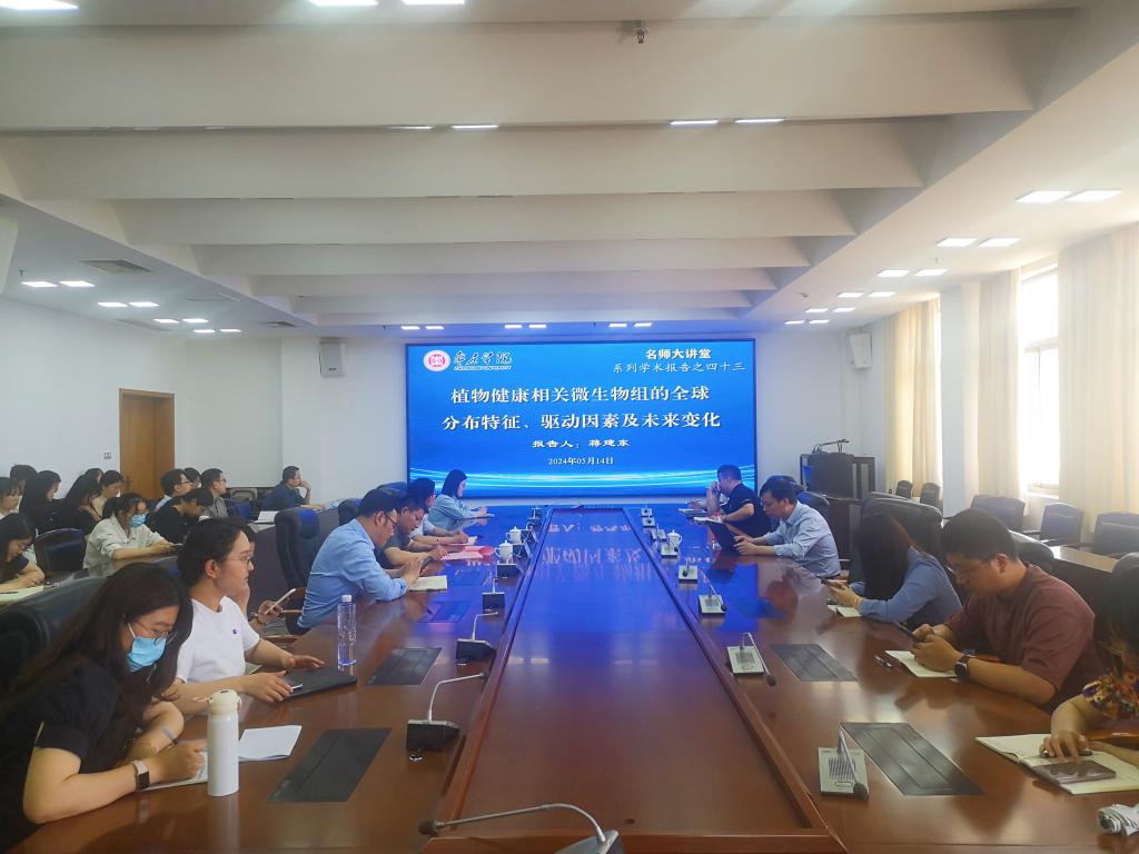 在接下来的报告中,蒋教授详细阐述了植物健康相关微生物组的全球分布特征、驱动因素以及未来变化趋势。他结合最新研究成果,为师生们揭示了植物病原真菌和植物有益细菌在全球范围内的分布规律,以及影响这些微生物组分布的关键因素。同时,他还对未来植物健康相关微生物组的变化趋势进行了展望,为解决全球粮食问题提供了新的思路和方法。
