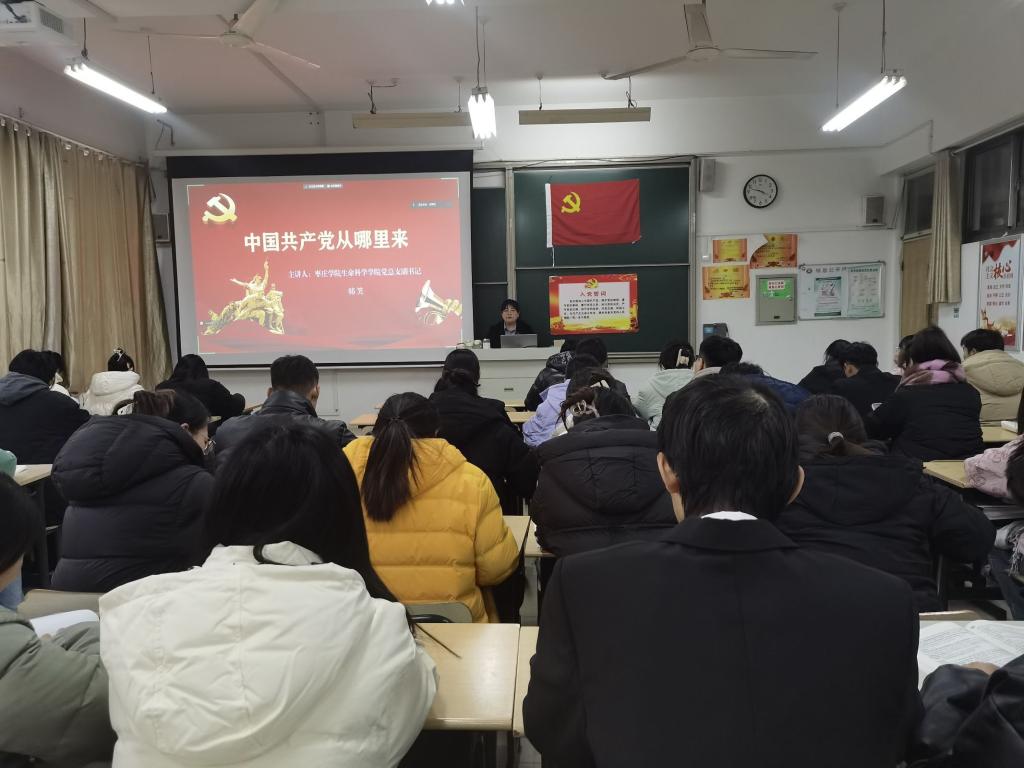 11月29日下午,万象城awcsport官网党总支副书记韩笑在理工楼2207为学生党支部党员上了一堂题为《中国共产党从哪里来》的党课。