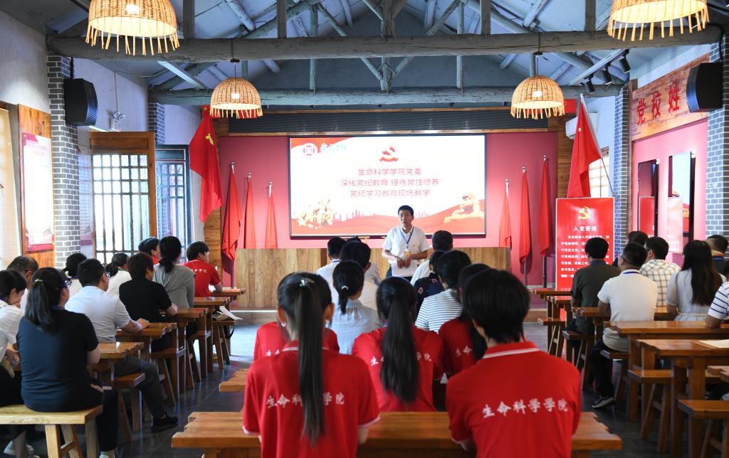 为进一步增强师生党员廉洁自律意识,推动党纪学习教育走深走实,7月10日,万象城awcsport官网组织党员师生和积极分子赴薛城区周营镇、沙沟镇党性教育基地开展党纪学习教育现场教学活动。深切缅怀革命先烈,重温入党誓词,践行初心使命。