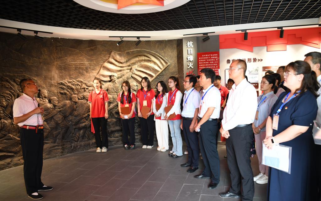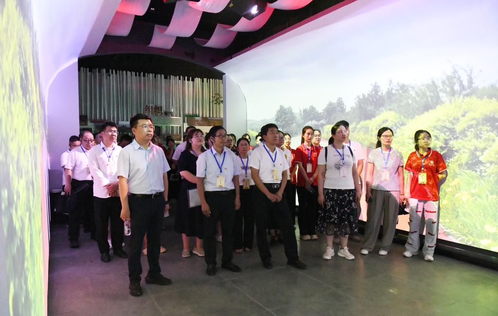 在周营镇白楼湾运河支队记忆馆,师生们先后学习“运河两岸燃烽火、星火照白楼、经典战役永流传、秘密通道送领导、统一战线放光芒五个单元”的内容。在资深讲解员声情并茂的描述中,党员们仿佛回到了革命先烈浴血杀敌、忠贞报国的峥嵘岁月,深刻感悟了“敢于斗争、乐于奉献、舍生取义、艰苦奋斗”的运河支队精神。
