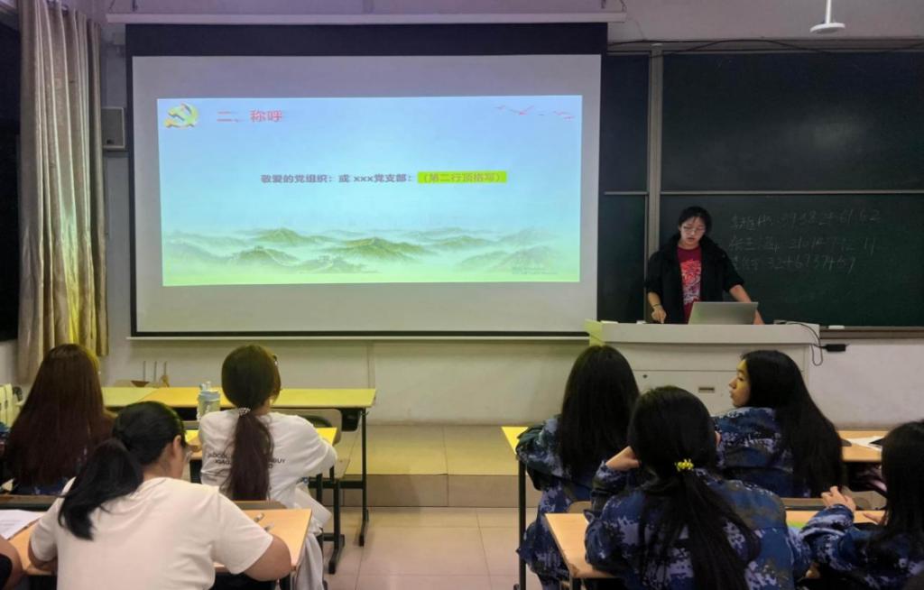 宣讲会上,党员先锋队队员详细说明了大学生向党组织靠拢的重大意义,介绍了党员发展的每个环节,从递交入党申请书、成为入党积极分子,到发展对象、预备党员直至正式党员的全阶段条件与程序进行拆解说明,强调了入党的各项知识和注意事项,讲述了入党条件和入党流程以及入党申请书的书写。团队成员聚焦入党申请书撰写,从“为何写、写什么、怎么写”三个维度,详解结构规范与情感表达要点。同时党员先锋队队员在会上为同学们的疑问做出解答,并介绍相关活动,加强学生对党务活动的了解,为下一步的工作开展奠定思想基础。