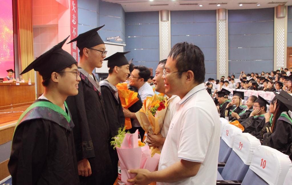 毕业生代表为在场领导老师献上鲜花、热情拥抱、倾心话别。