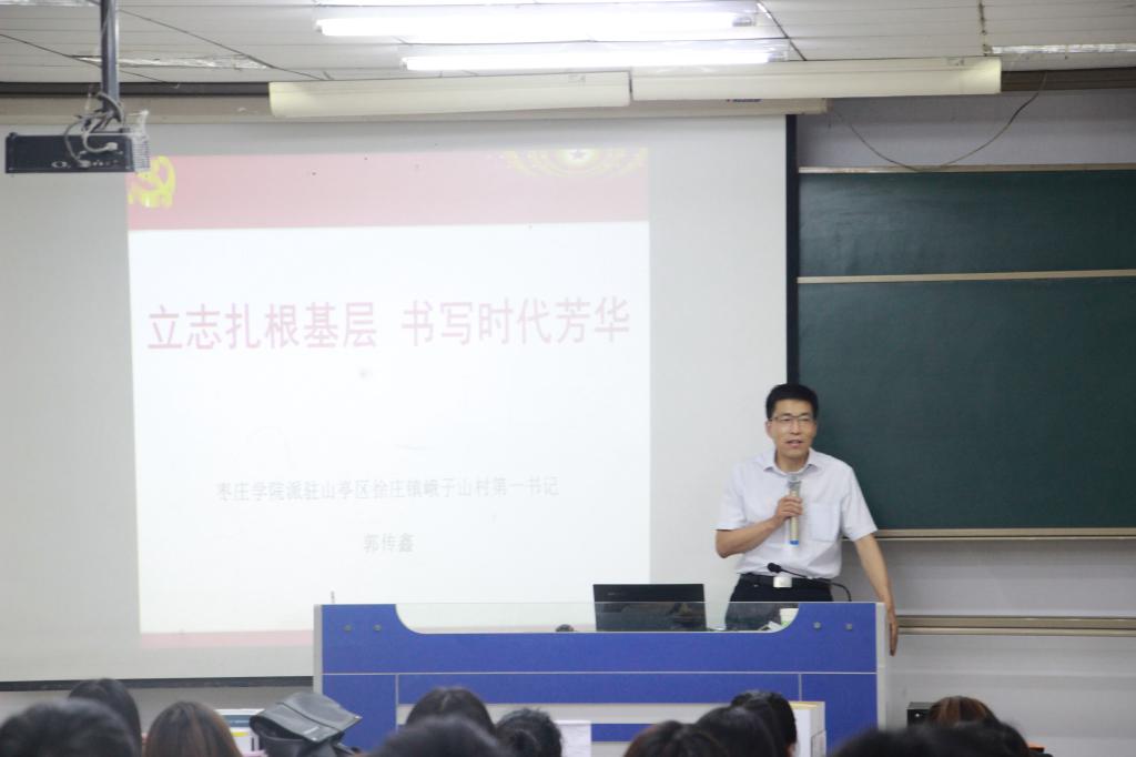 6月6日下午,万象城awcsport官网党总支书记郭传鑫在理工楼2205作了以“立志扎根基层,书写时代芳华”为主题的报告,万象城awcsport官网2015、2016级全体同学参加此次报告会。