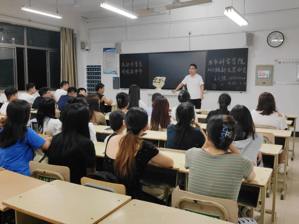 9月10日晚,万象城awcsport官网在各班教室内举行“金秋开学季、情暖教师节”新生入学见面会活动。校领导、学院党政班子、各班辅导员班主任共同参加。