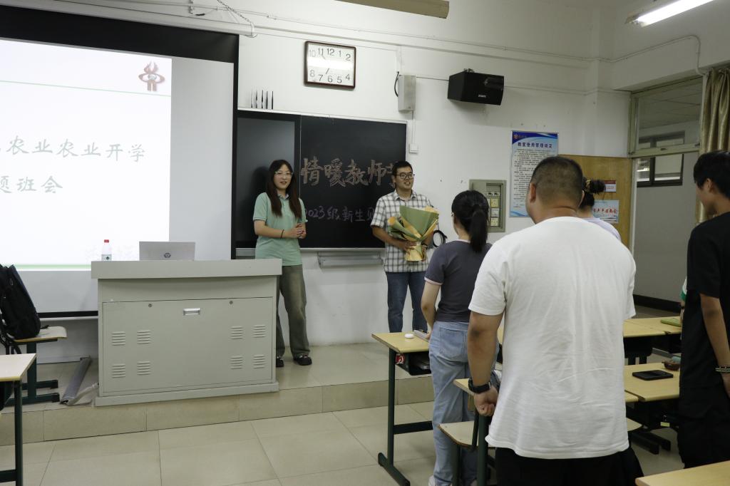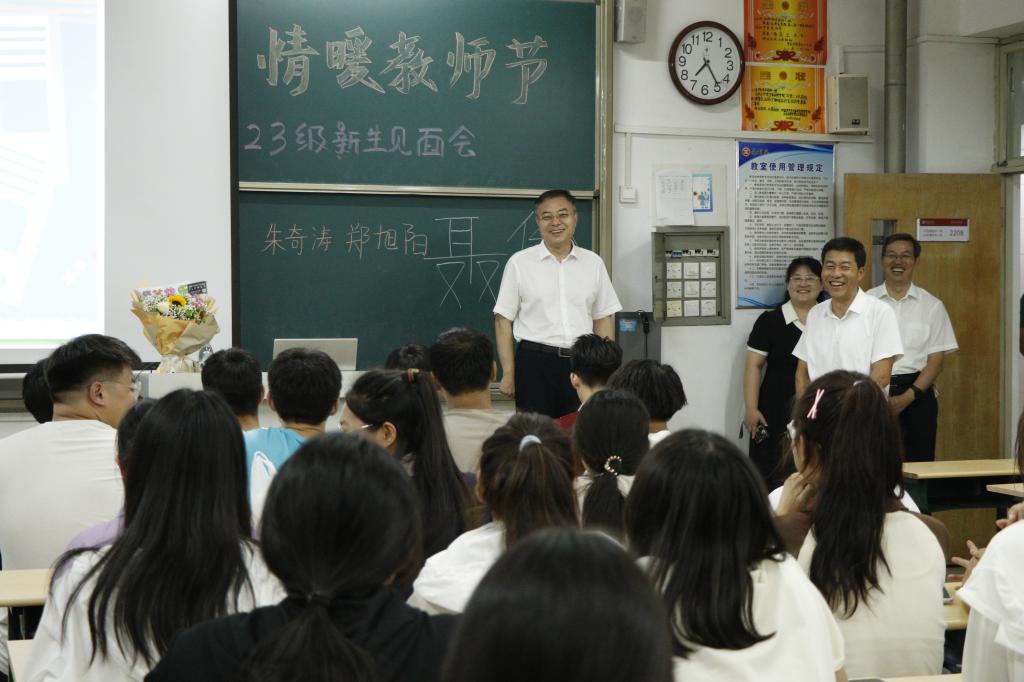 在班级内,新生们还为班主任老师献上了“教师节快乐”的鲜花并起立问好。老师们就大学生活、学业课程等方面对同学们进行了积极引导,鼓励新生们正确树立自己的人生目标,在未来四年的大学生活里,明确方向、珍惜时间、积极奋进,锻炼自己,练就过硬本领。