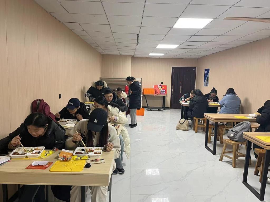 在6个考点,14名带队老师、15名志愿者全程服务,耐心引导考生、提供药品、准备热水、看护物品,安排餐饮,为考生加油打气。集体就餐的考生们纷纷表示,在这寒冷的天气里,出了考场就能喝到一口热汤、吃上一口热饭,让人既“暖胃”又“暖心”。