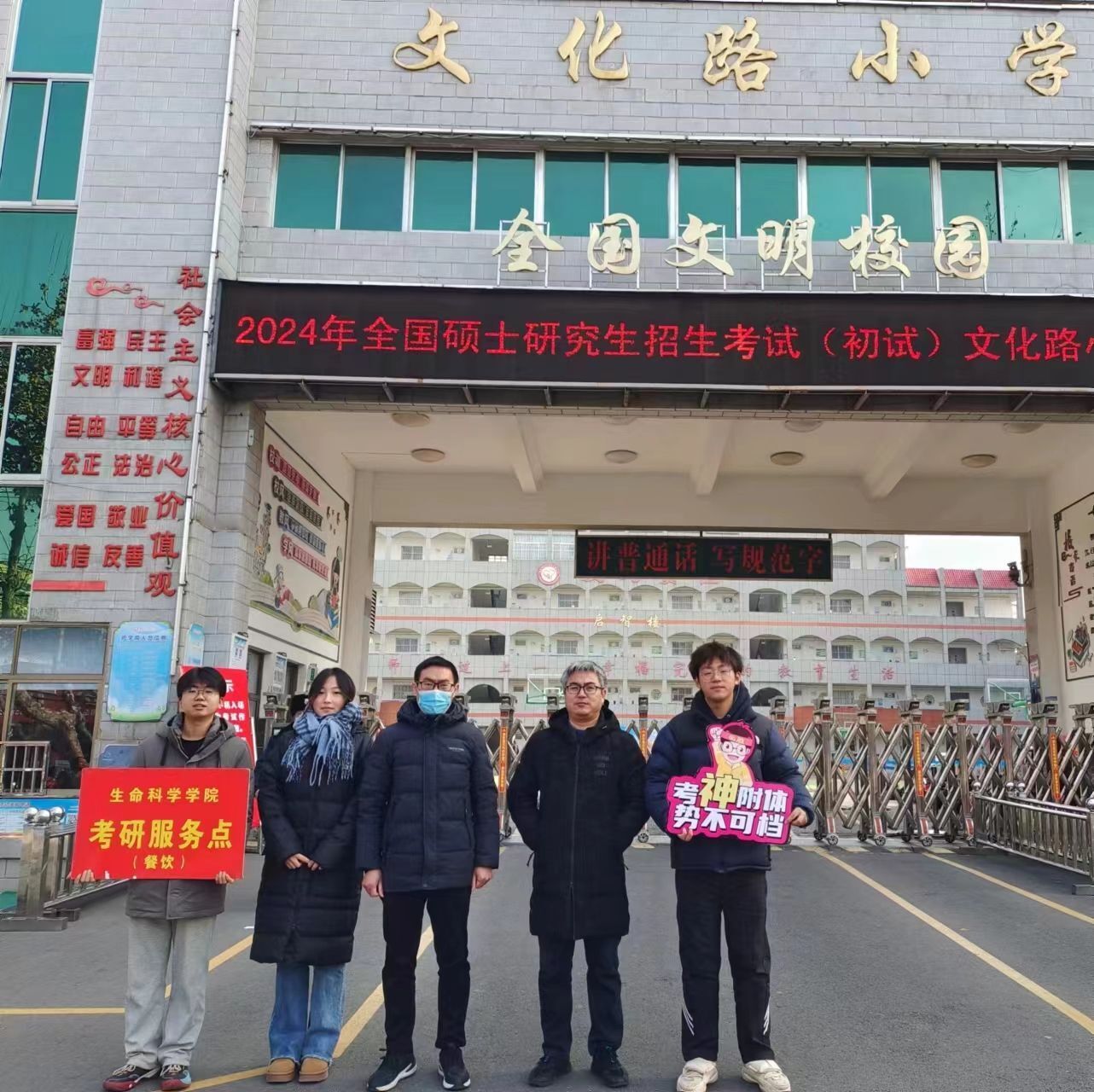 寒冬有暖阳,送考显温情。2023年全国硕士研究生招生考试在严冬中拉开序幕,为帮助考研学子安心备考,万象城awcsport官网精心部署、多措并举,积极做好关心关怀和服务保障工作,切实为学院165名考研学子保驾护航。