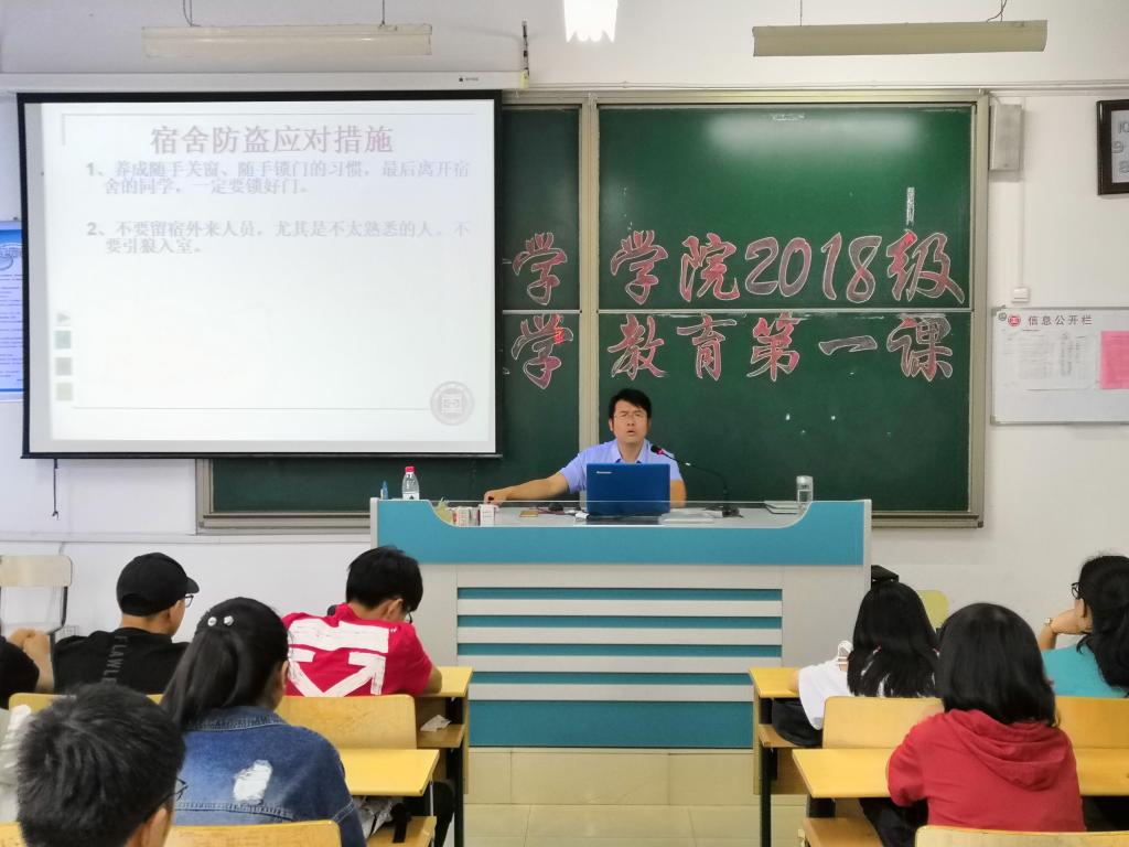 首先,党总支副书记陈原国从美丽山东、秀丽枣院、枣院校训、威武生科四个方面对枣庄学院所处地域与枣庄学院的具体情况做出了详细的解读。通过真实案例,向新生们强调了宿舍、出行、饮食、财产等安全问题。
