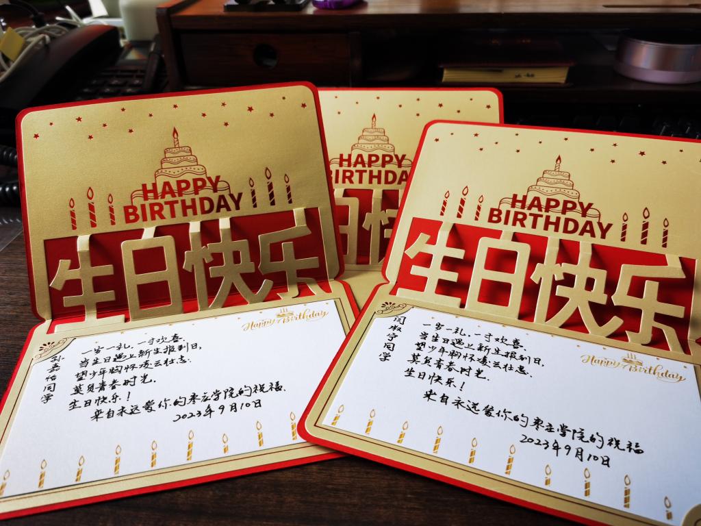 在现场,学院领导依次为学生送上生日蛋糕、贺卡和礼物。党总支书记郭传鑫代表学院向“小寿星们”送上生日祝福,他表示今天的活动不仅是为了庆祝在场新同学的生日,更是为了一起庆祝39个教师节,对同学们具有格外的意义。希望同学们能够志存高远,勤奋学习,练就过硬本领,在大学生活中奋勇前进、扬帆起航,在枣庄学院收获更多的幸福和快乐,在追梦中续写出更美的青春华章。