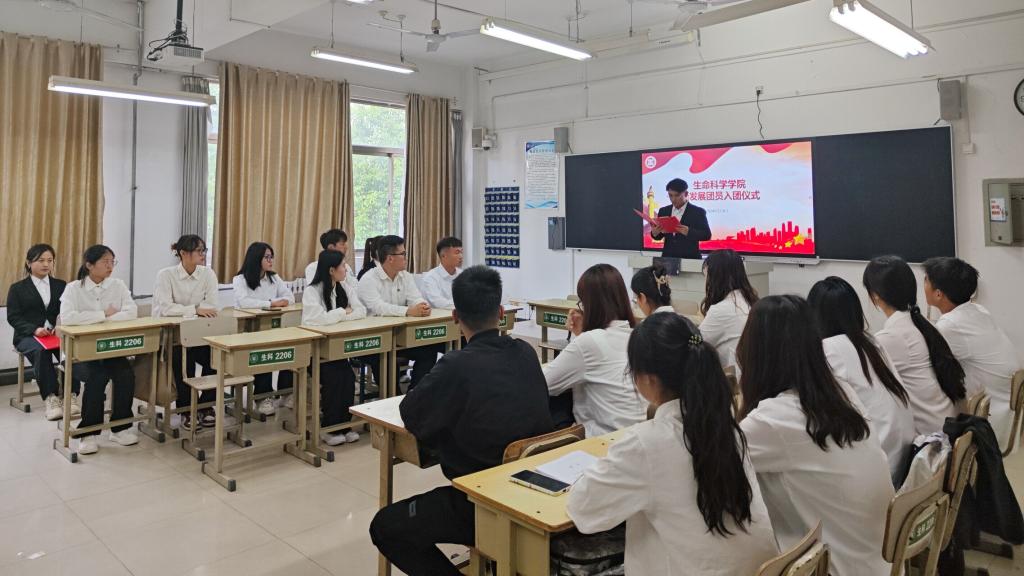 为进一步加强万象城团组织建设,增强对青年学生的思想引领作用,激发新团员的责任感、使命感,5月6日下午,万象城在理工楼2206教室举行2024年上半年新团员入团仪式。万象城awcsport官网王正荣书记、团员学生干部代表及新团员共18人参加了本次仪式。