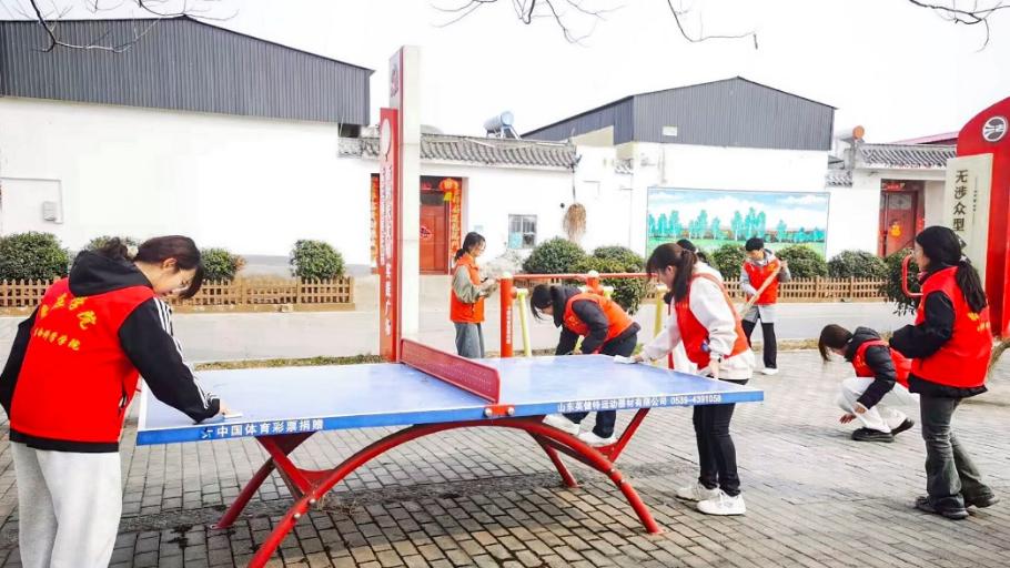 在运动广场上,志愿者们带着清洁工具,仔细擦拭乒乓球台、健身器械等。不放过任何角落,让器材干净如新,为村民打造了更优质的健身环境。这不仅提升了器材的美观度,也为村民们提供了更加干净、安全的健身环境。