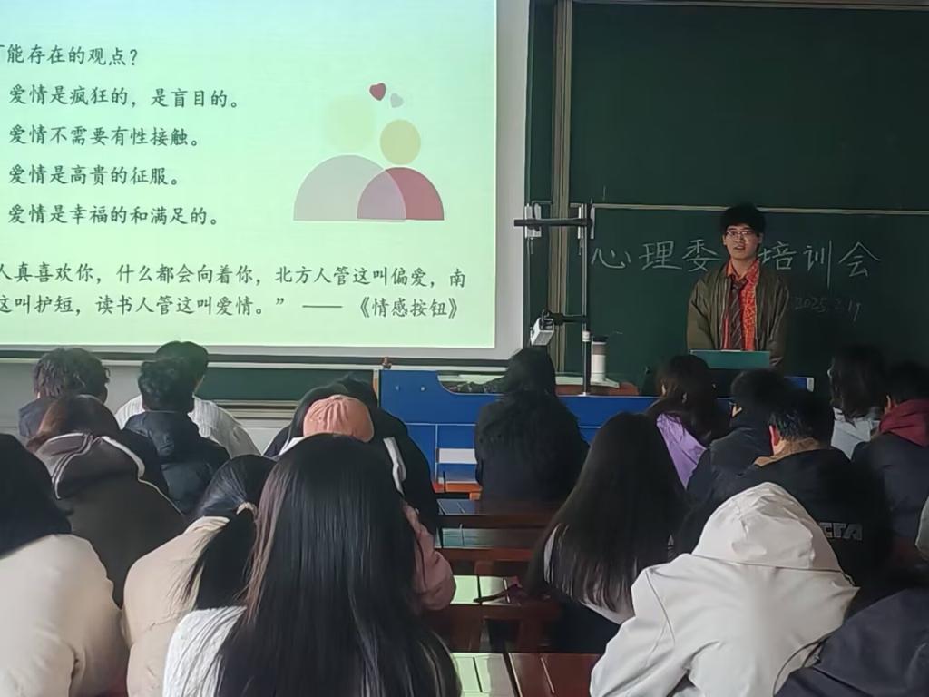 为帮助心理委员更好地理解和引导同学们在恋爱中的行为和情感,促进健康和谐的校园爱情关系,万象城awcsport官网于2025年3月19日15:00—15:30在理工楼2319教室开展“大学生恋爱心理”心理委员培训会。