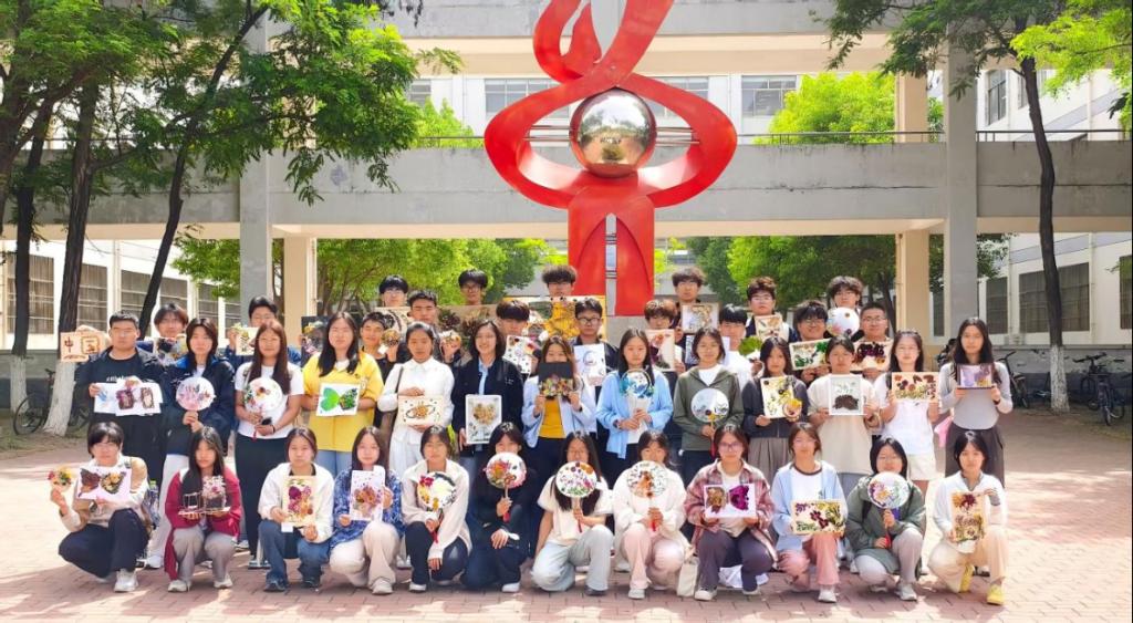 活动现场,参赛者巧用花朵、树叶等植物材料,创作出60余件作品。植物拓染区,素白棉布平铺于操作台,参赛者手持木槌轻敲新鲜叶片,叶脉纹理随植物汁液自然渗透,形成独具匠心的天然纹样;干花创意区,风干玫瑰、蕨类等材料经巧妙拼贴,化作古风团扇、木质相框上的诗意装饰;植物书签区,将叶片与干花定格于透明薄膜中,制成兼具实用与观赏性的书香伴侣。特设的作品展示区吸引超200人次参观,成为校园“打卡点”。许多同学表示,通过亲手制作植物手作,既感受到传统工艺的魅力,也深化了对自然美学的理解。