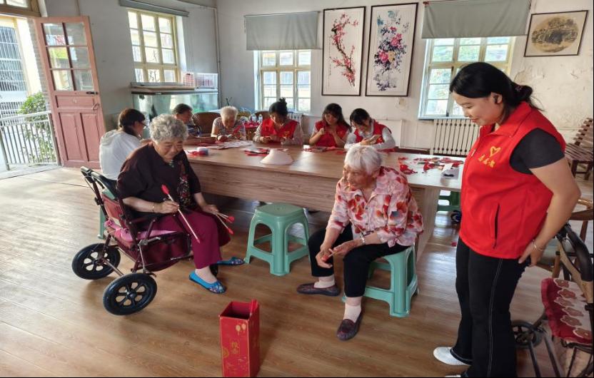 活动伊始,志愿者向老人讲解剪纸艺术的历史渊源与文化内涵,并将复杂的剪纸步骤拆解为折纸、描线、剪裁等简单易懂的环节。在志愿者的耐心指导下,老人们专注创作,红纸在剪刀起落间化作花鸟等精美图案。