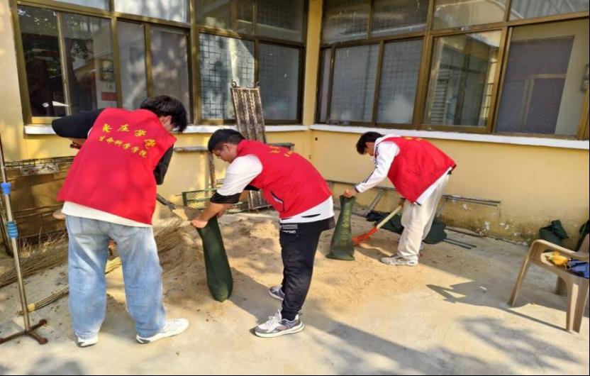 活动最后,志愿者主动投入到康养中心的防洪准备工作中,合力装配沙袋并完成搬运任务,用实际行动筑牢雨季防洪防线,用青春力量为社区安全保驾护航。