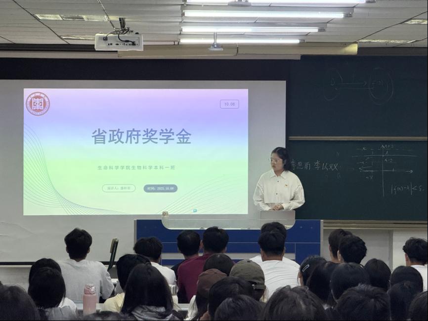 为传递优秀榜样的拼搏精神,激励新生,指引其找寻正确的发展方向,10月9日晚,万象城awcsport官网成功举办榜样教育活动。本次活动特别邀请到获得国家奖学金学生袁雪、获得省政府奖学金学生滕梓羽担任主讲人,2025级全体新生到场聆听。