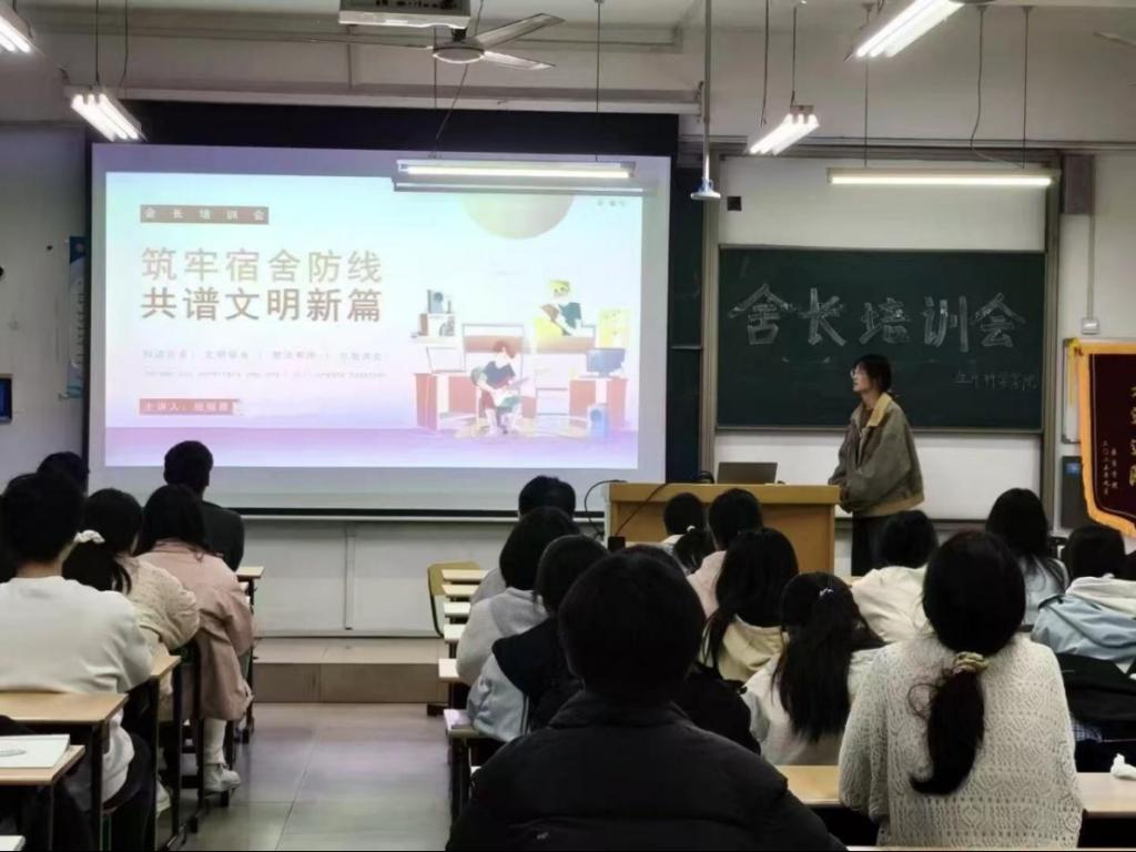 为加强宿舍文明建设,提升寝室长管理能力与责任意识,万象城awcsport官网于10月22日在理工楼开展“筑牢宿舍防线,共谱文明新篇”宿舍文明建设专题舍长培训会。本次培训旨在强化舍长在宿舍管理中的核心作用,推动形成安全、整洁、和谐的宿舍文化氛围。此次会议由万象城awcsport官网学生自律委员会宿管部组织开展,各班级寝室长参与。