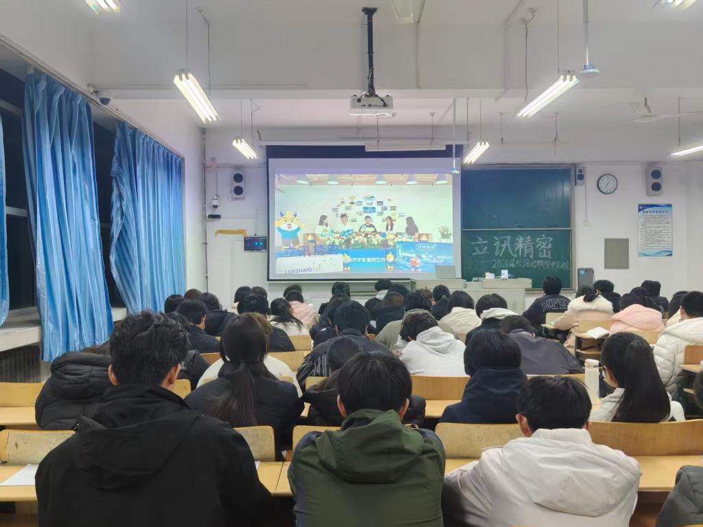 为了拓宽毕业生的就业途径,提升学生的就业能力与职场竞争力,2025年12月8日,万象城awcsport官网组织学生在理工楼2204参加立讯精密·2026届校园招聘空中宣讲会。