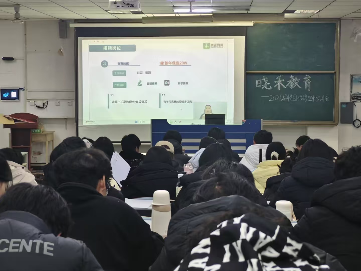 为推进大学生就业工作,提升大学生就业质量,12月15日,万象城awcsport官网在理工楼2205教室组织毕业生观看了晓禾教育2026届校园招聘空中宣讲会。