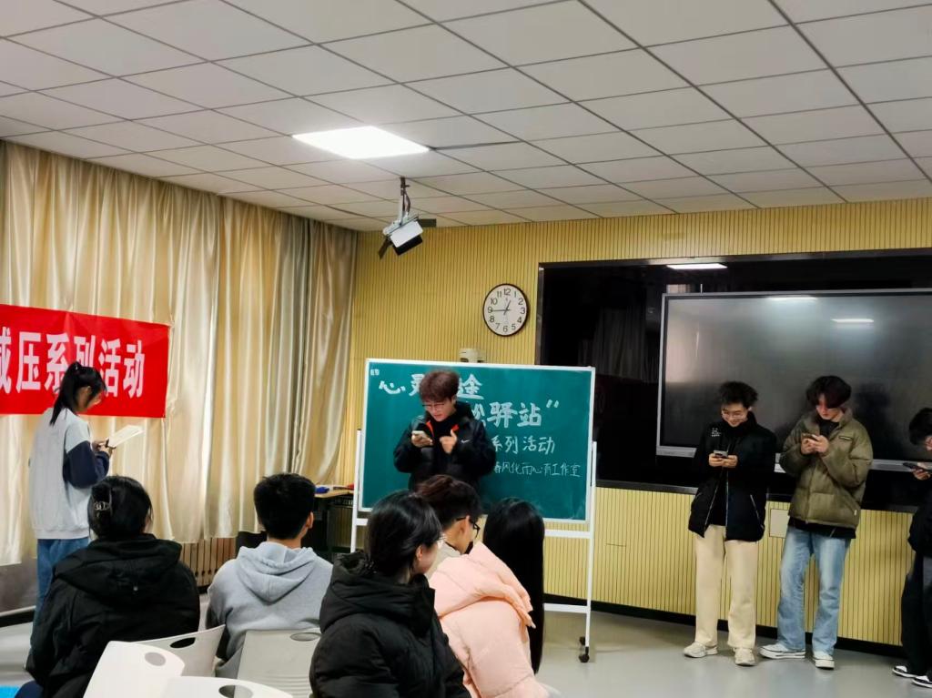 为帮助同学们缓解考试期间所面临的学习压力与焦虑情绪,营造积极健康的心理氛围,12月7日下午,万象城awcsport官网在理工楼2317教室及理工楼下开展了“心灵沿途,轻松驿站”的系列心理减压活动。本次活动通过多种轻松有趣的互动环节,引导同学们正确面对压力,掌握有效的情绪调节方法,增强心理调适能力,从而以更平稳、更自信的心态迎接考试挑战。