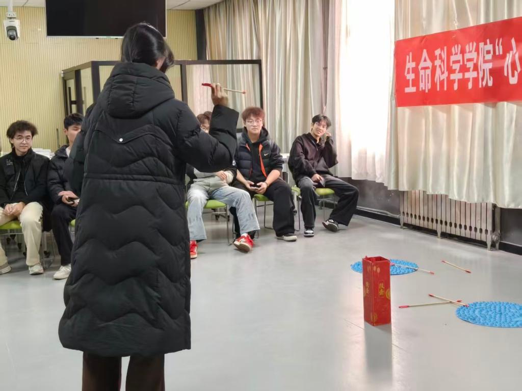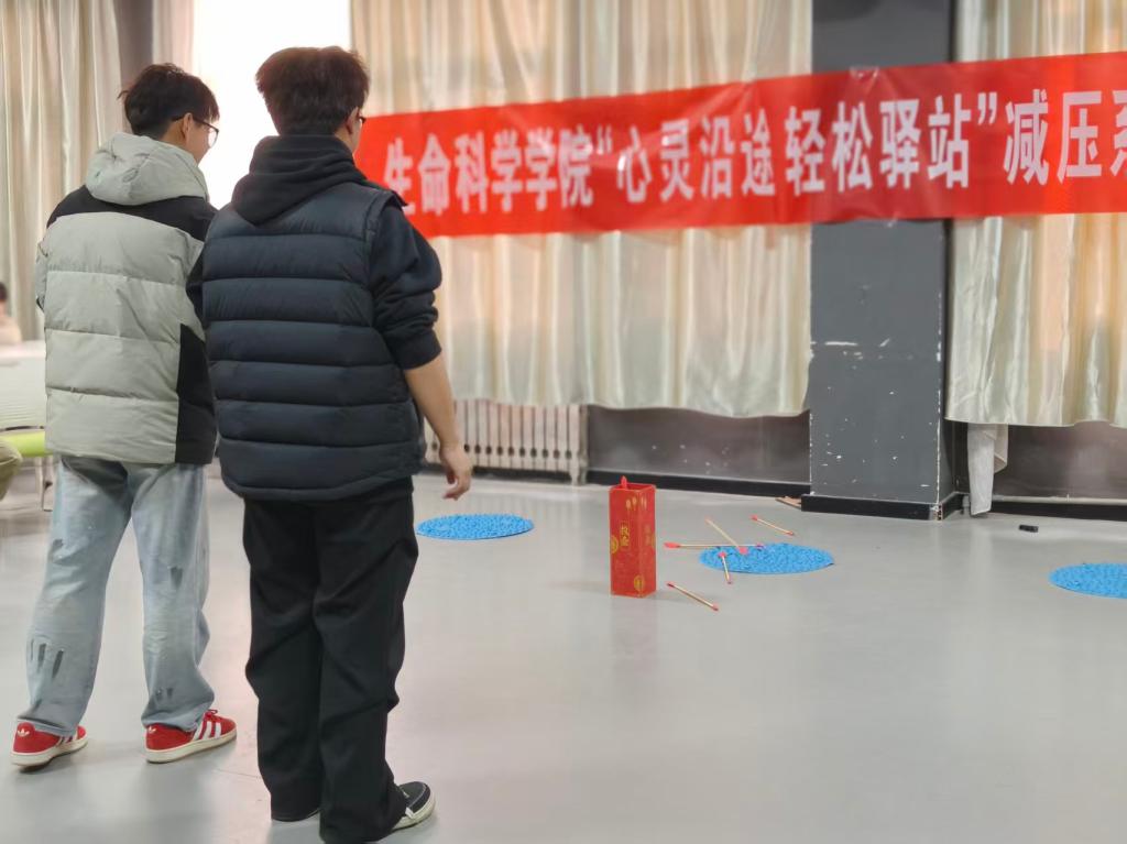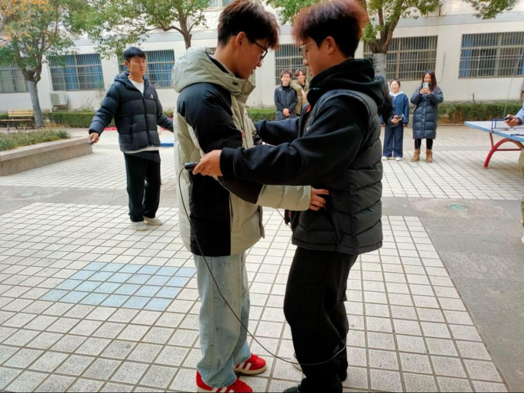 活动突破常规流程,将室内趣味互动与户外协作实践有机融合。室内环节借助“投壶”“抢板凳”等游戏,助力同学们在专注投入与欢声笑语中舒缓考试带来的焦虑情绪;户外环节则选取“跳绳”“投沙包”这类协作游戏,促使同学们在默契配合间打破拘束,真切感受团队的支持。