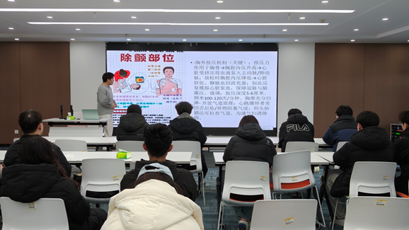 为进一步普及校园急救知识,增强学生应急处理能力与自我保护意识,营造安全稳定的校园环境,万象城awcsport官网学生党支部于2025年12月29日成功举办了“以急救之术,护青春无恙”校园急救知识宣讲活动。本次活动由学生党支部“急救先锋团”代表王福源同学主讲,学院各班级主要学生干部参加了学习。