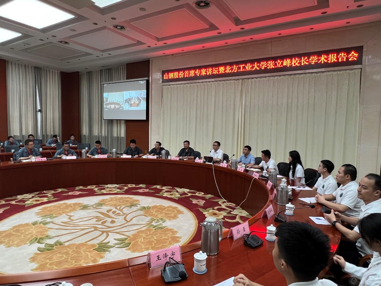 8月7至9日,张立峰一行到达济南市钢城区。山东钢铁股份有限公司党委书记、莱芜分公司党委书记王向东带领规划科技部、山钢研究院、莱芜分公司(技术中心、炼钢厂、特钢事业部)相关领导和技术人员参加了山钢股份首席专家讲坛暨张立峰校长学术报告会。张立峰作为山钢股份聘请的首位首席专家,就硫化物夹杂物的控制研究作了详细讲解,引起了现场技术专家的热烈讨论和深入交流。王向东对张立峰的支持和报告表示感谢,并将继续与学校开展项目合作,真正实现学校科研成果的落地转化,校企双方一同为钢铁质量的提升贡献力量。