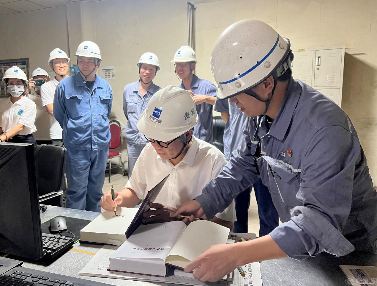 8月9至10日,张立峰访问下一站到达邯郸钢铁,邯郸钢铁党委副书记、总经理韩健及技术中心、冷轧厂、炼钢厂的领导对其表示了热烈欢迎。在交流座谈中,首先由随行老师就易切削钢和重轨钢的研究内容进行了报告,双方结合现场生产难题和钢种冶炼目标进行了交流,张立峰一一解答了现场技术人员的疑问和困惑。随后,在邯钢技术中心副主任张义春的陪同下,张立峰一行先后参观了邯钢炼钢厂和冷轧厂。