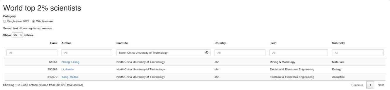 “全球前2%顶尖科学家榜单”分为“终身科学影响力榜单”(关注整个学术生涯迄今的影响力)和“年度科学影响力”榜单(聚焦本年度学术成就)。此次更新的榜单中,贝博官网张立峰、李建林、杨海涛、高心怡等4位学者入选“终身科学影响力榜单”,张立峰、张晓光、杨海涛、李建林、庞中华、郑超、高心怡等7位学者入选“年度科学影响力”榜单。