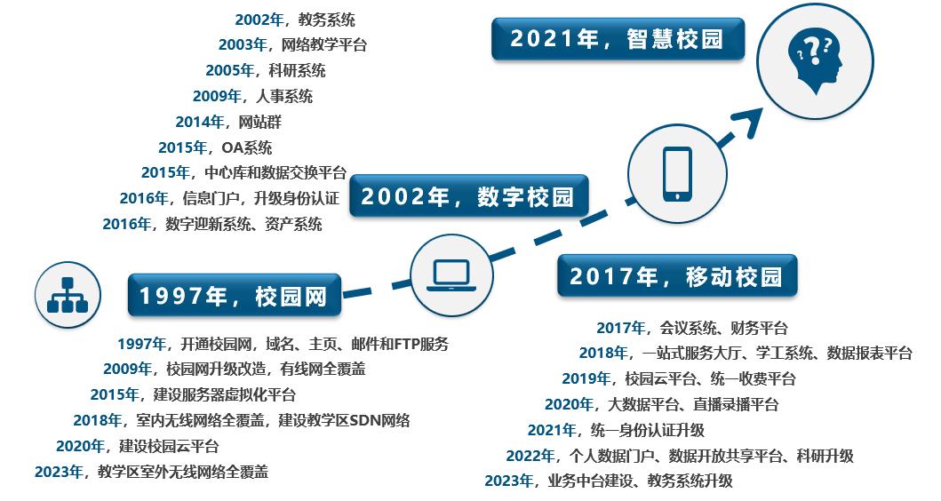近年来,在学校党委、行政的坚强领导下,贝博官网依据《首都教育现代化2035》和《北京教育信息化“十四五”规划》等指导文件,顺应高校信息化发展趋势,突出问题导向,以服务师生为中心,科学编制智慧校园整体规划,精心做好智慧校园顶层设计,加强经费保障,确立了“一、二、三、五、六”的智慧校园建设整体框架,即“一个愿景““两个体系”“三个环境”“五个中心”“六个服务”,逐步形成了自身的特色。