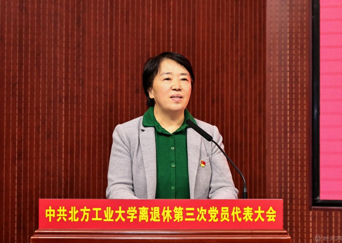田红芳代表学校党委对大会的召开表示祝贺。她指出,召开离退休第三次党员代表大会是学校政治生活中的一件大事,也是全体离退休党员的一件大事、一件喜事。离退休工作是学校工作的重要组成部分,离退休老同志是党和国家的宝贵财富,是学校事业发展的重要力量。学校党委始终高度重视离退休工作,坚持校领导联系离退休干部制度,做到政治上尊重老同志、思想上关心老同志、生活上照顾老同志,围绕中心工作谋划推进离退休工作。她希望新一届离退休党委继续真心实意地服务老同志,创新党员管理、改进支部工作、丰富文化活动,推动离退休工作再上新台阶,为学校事业建设贡献老同志的智慧和力量。她向与会党员代表通报校情,介绍了学校党的建设、人才培养、科研和学科建设、校地合作等方面的情况。