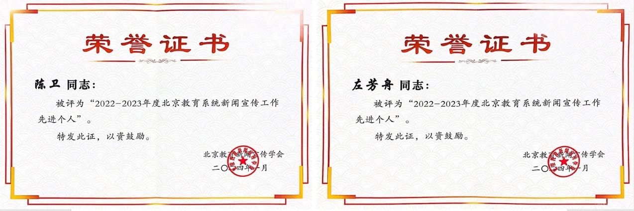 “北京教育系统新闻宣传工作先进个人”评选活动由北京市教育工委指导,北京教育新闻宣传学会组织评选,每年从北京高校系统及各区(含中小学)各评选出100人。