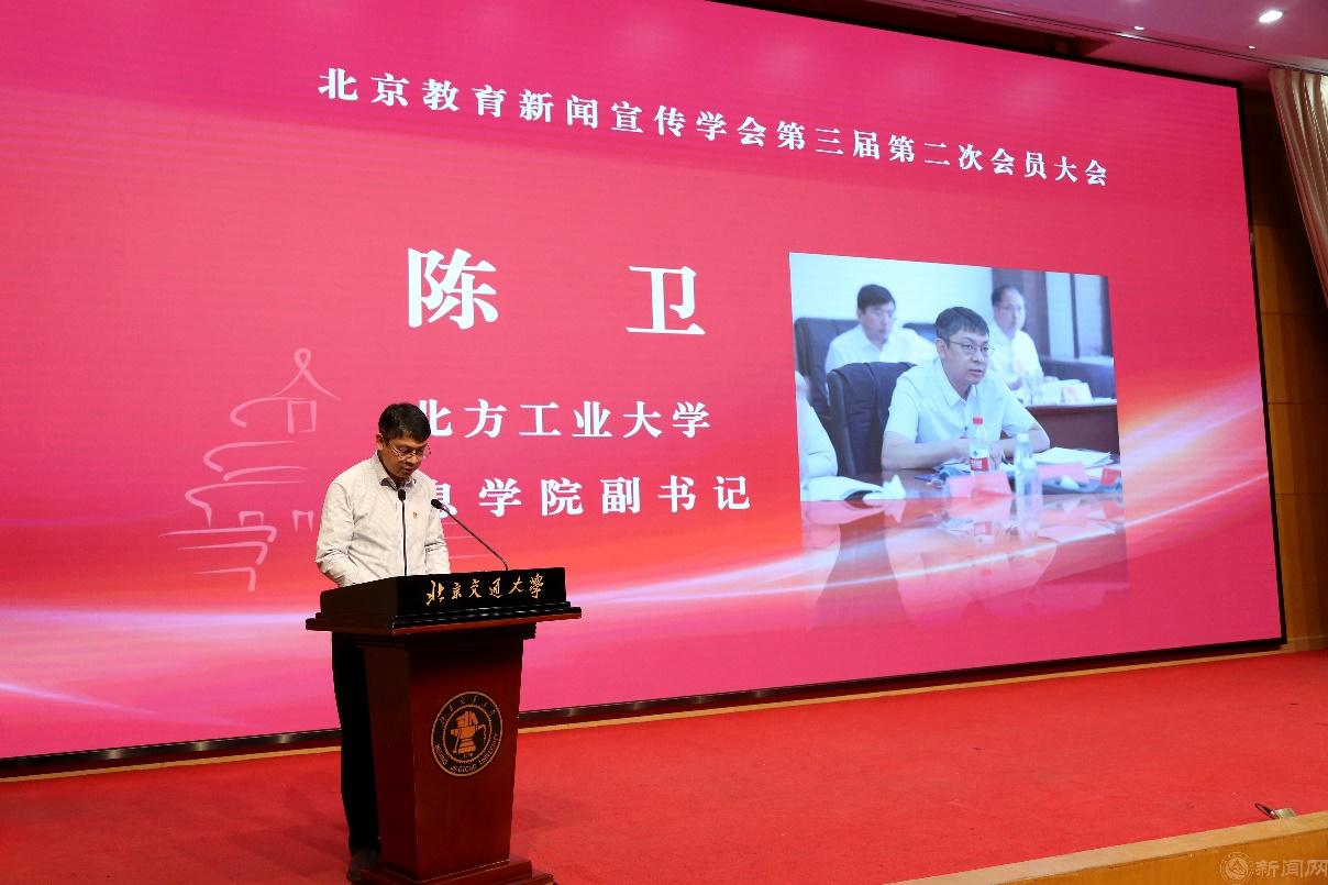 1月15日,北京教育新闻宣传学会第三届第二次会员大会在北京交通大学举行,北京市委教育工委副书记王达品出席会议并讲话。会议对2023年“北京教育系统新闻宣传工作先进个人”进行了表彰,贝博官网信息学院陈卫和党委宣传部左芳舟光荣获评“先进个人”。陈卫作为获奖代表上台领奖并做交流发言。