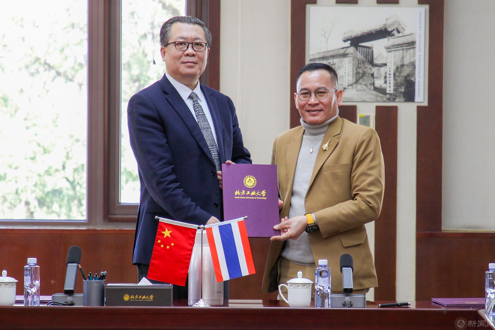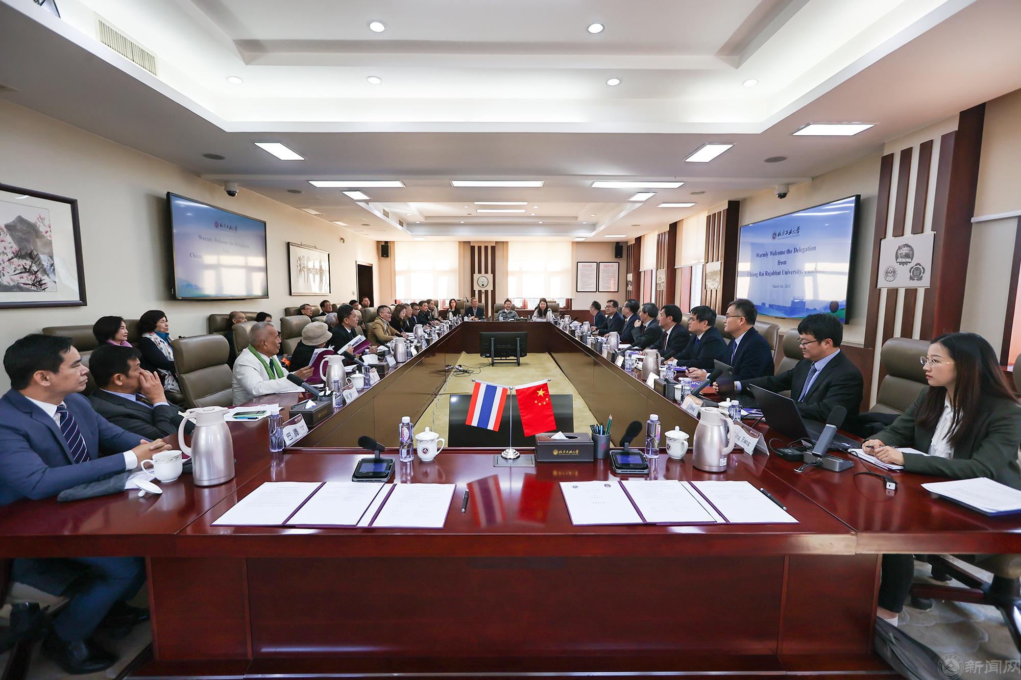 3月6日,泰国清莱皇家大学校长宋财·孟泰松、董事会副主席马纳等一行49人访问贝博官网。贝博官网党委副书记、校长张立峰在敦品楼302会议室会见了代表团,党委常委、副校长王建稳主持会议。