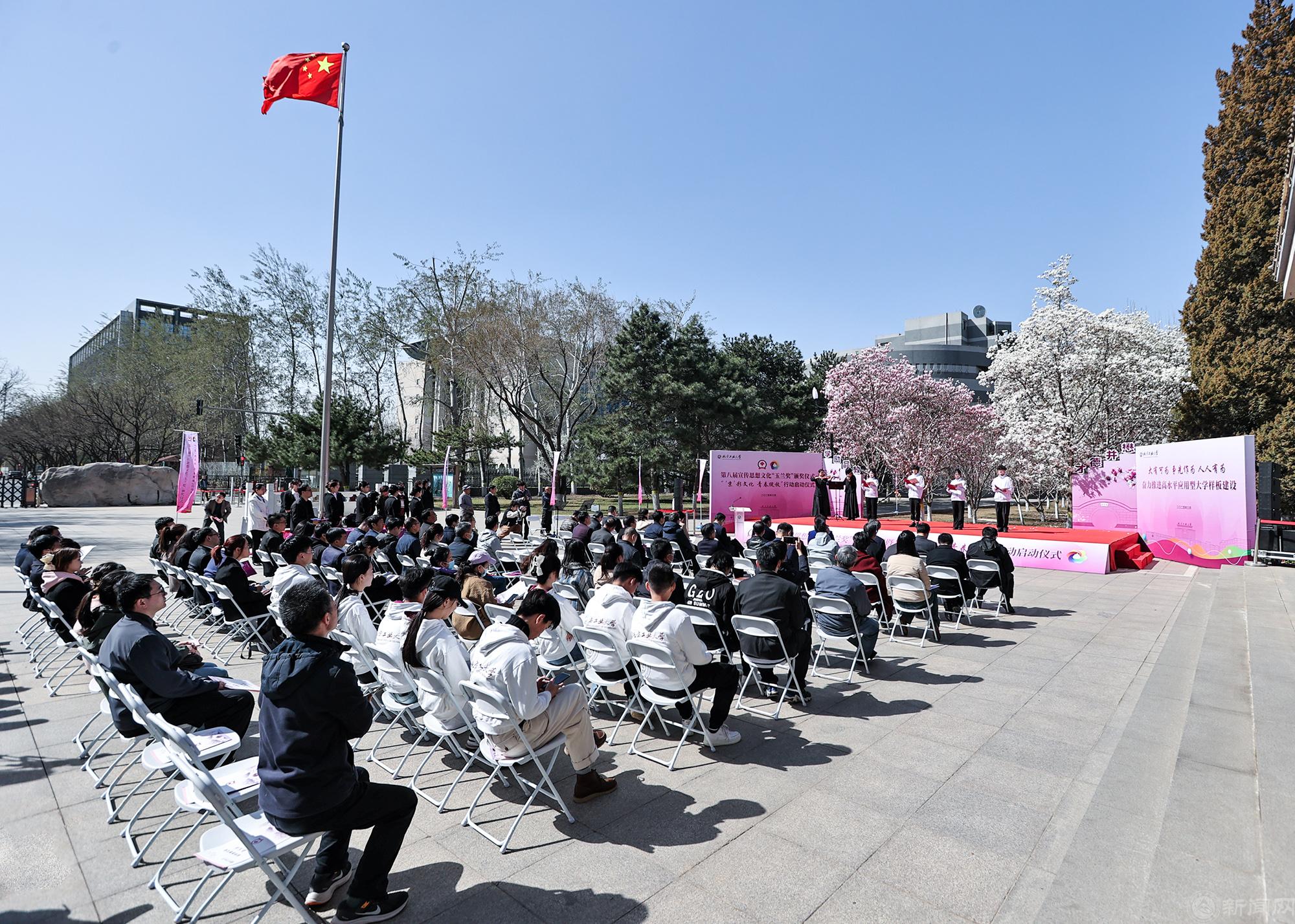 党委常委、副校长王力为学生代表授旗,正式启动“‘京’彩文化 青春绽放”行动计划。
